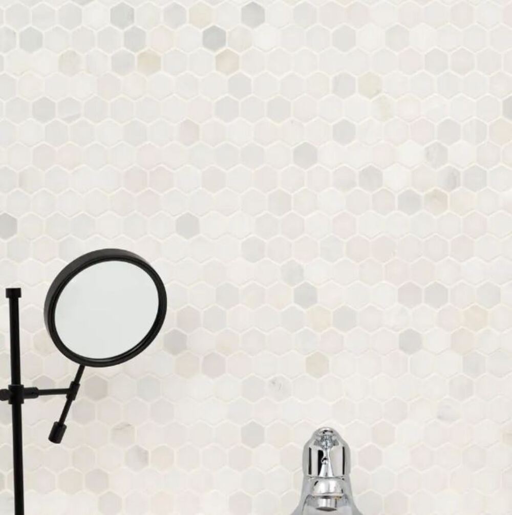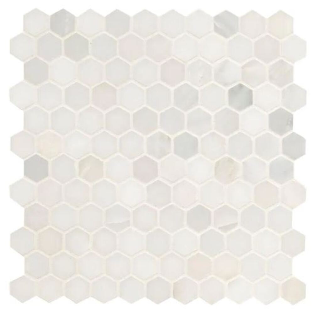 White Creamy Brownish Champagne Hexagon 1 in. Marble Floor Wall Tile Polished for Kitchen Backsplash, Bathroom Shower, Fireplace, Accent decor (Box of 10 Sheets)