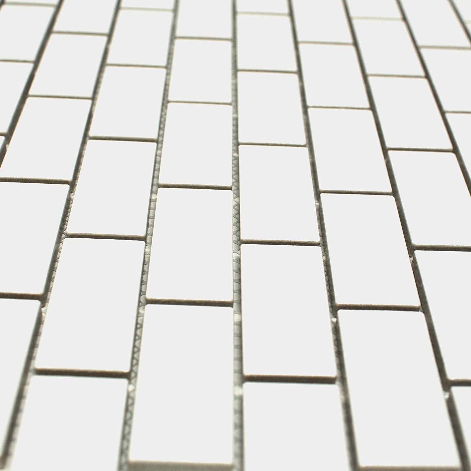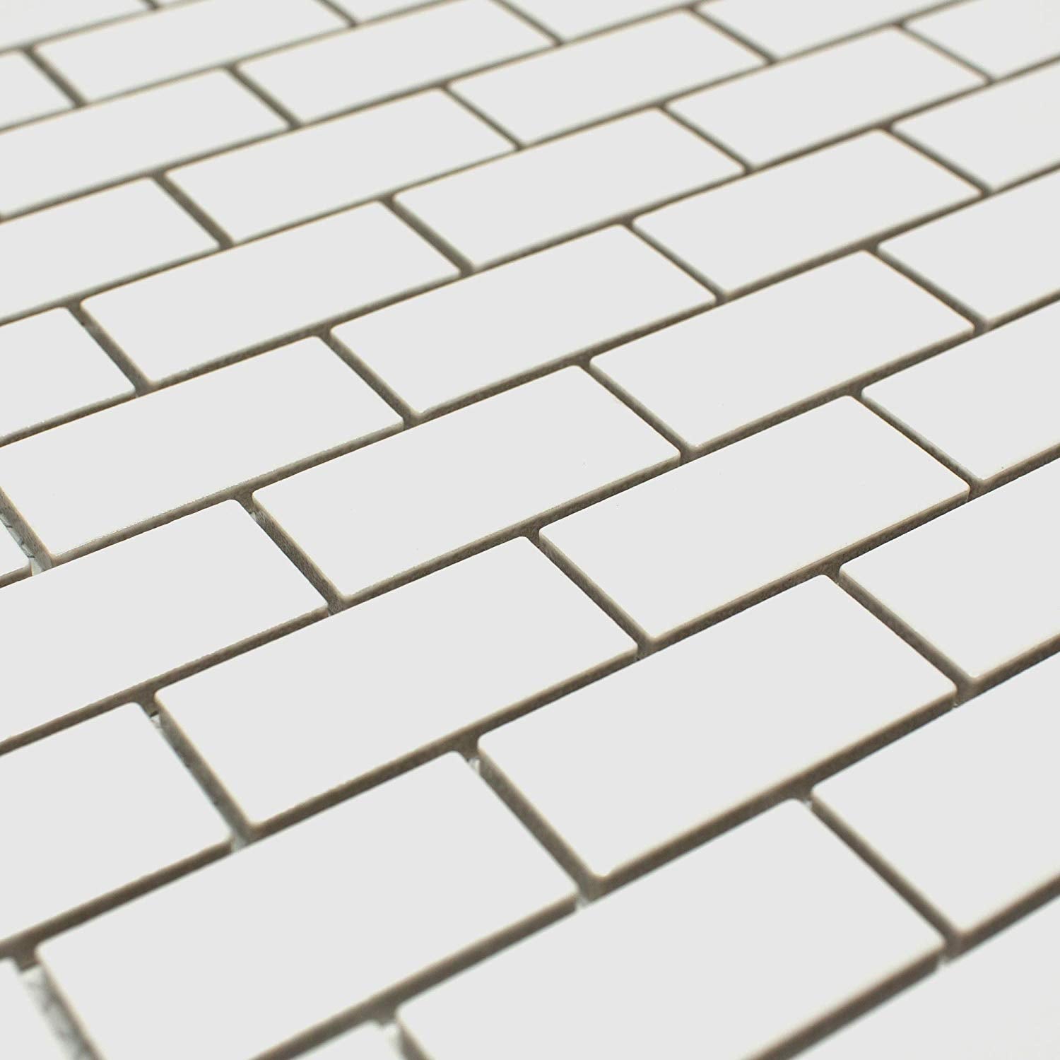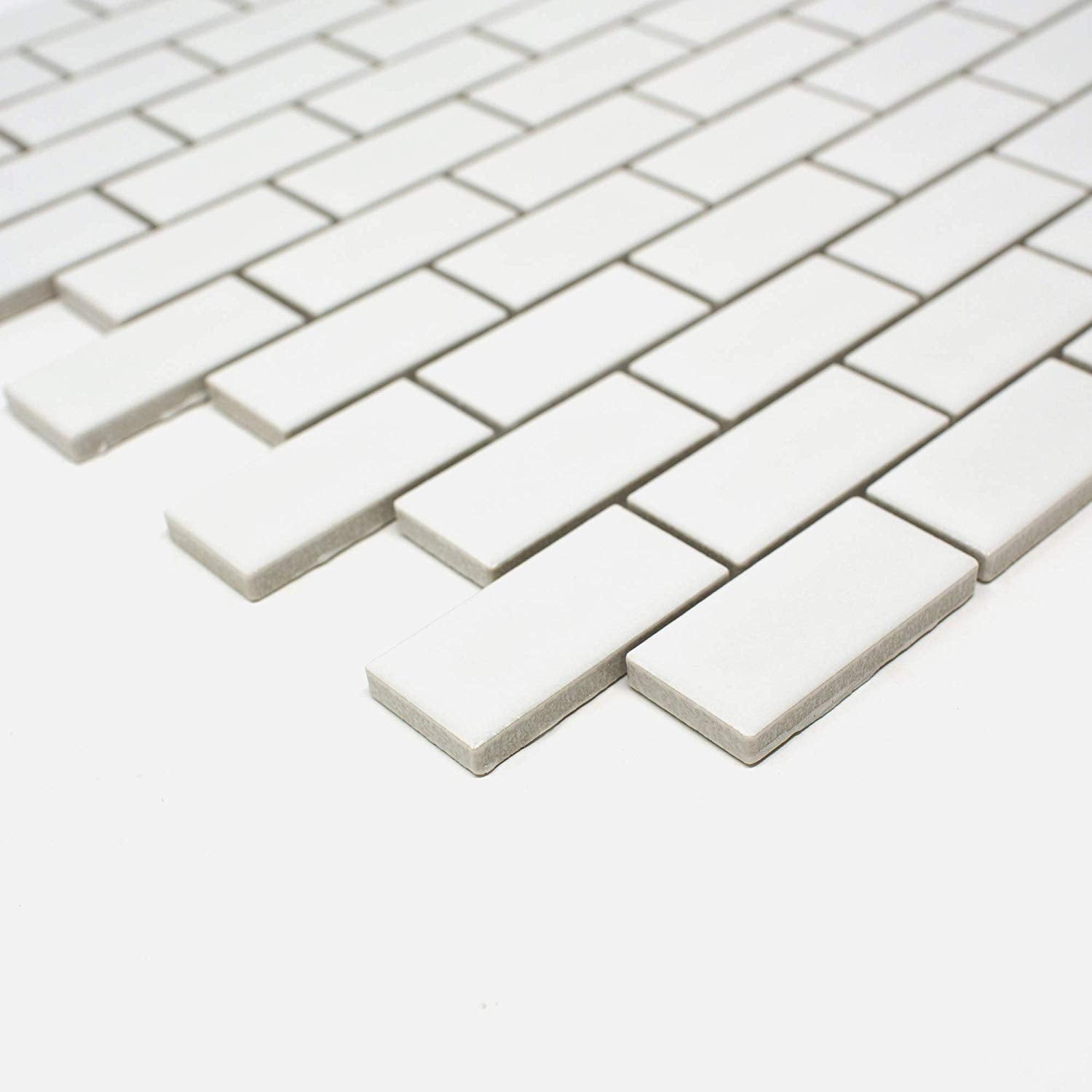 White Porcelain Brick 1x2" Floor and Wall Mosaic Tile- (Matte Finish)