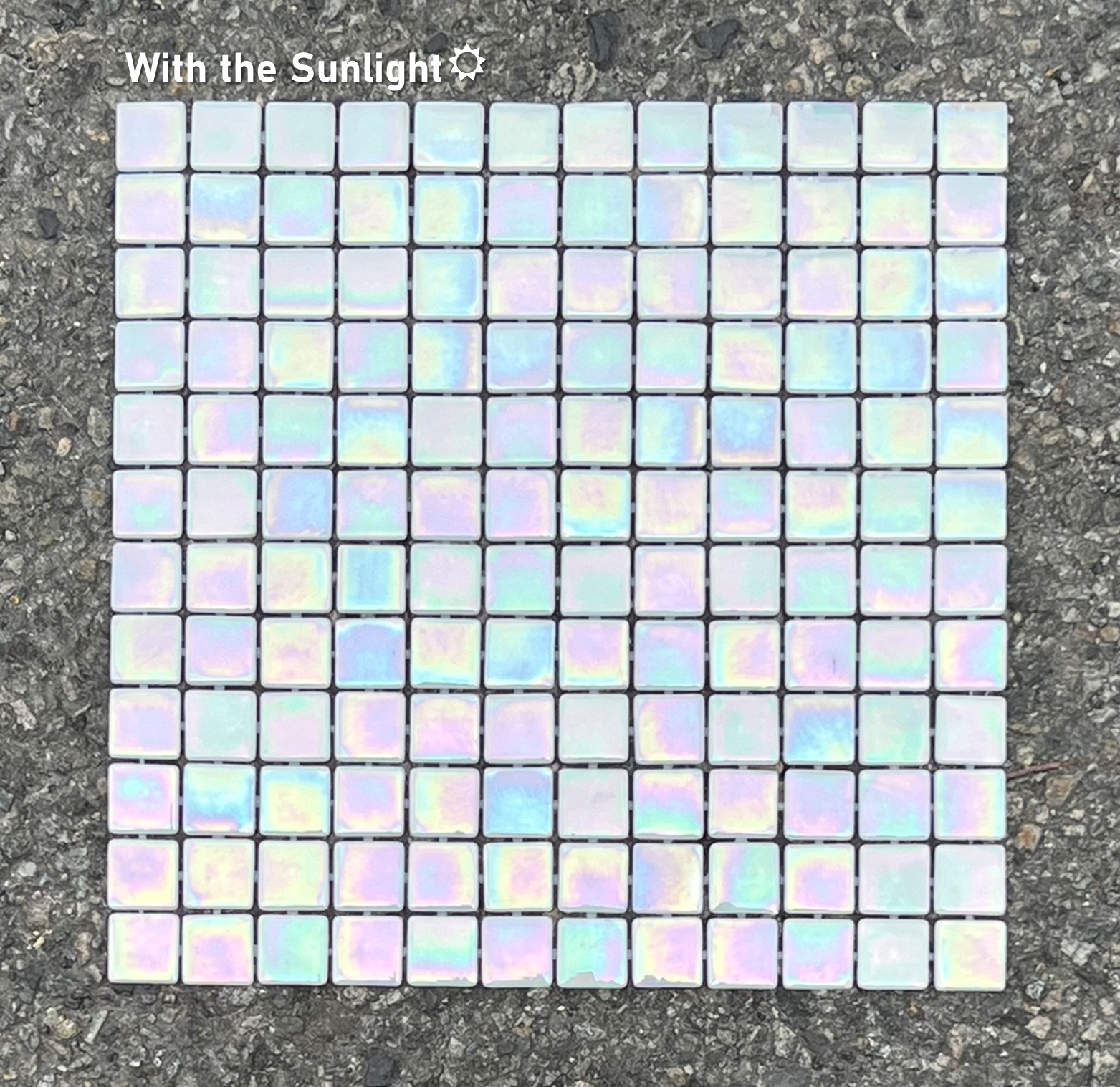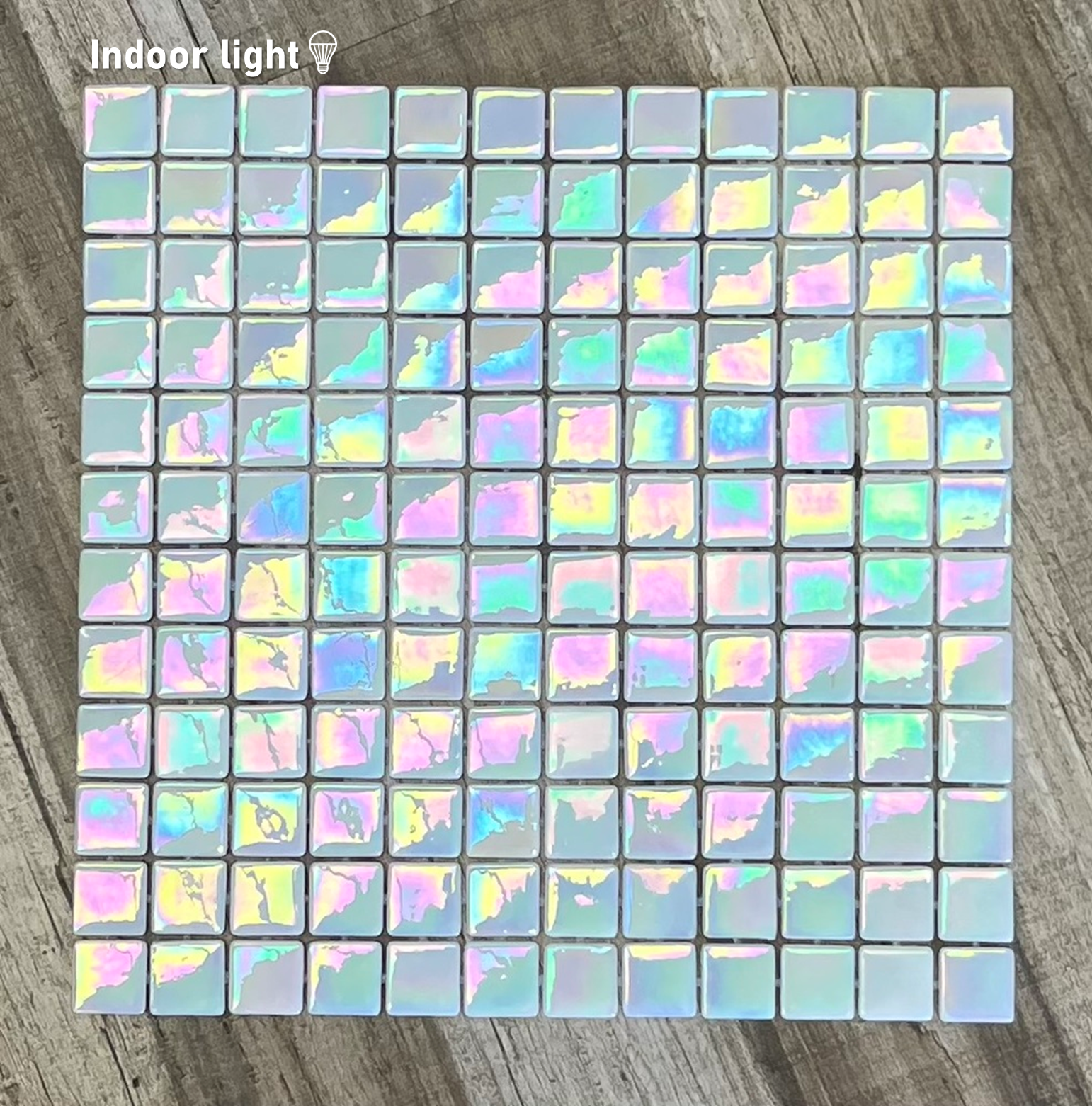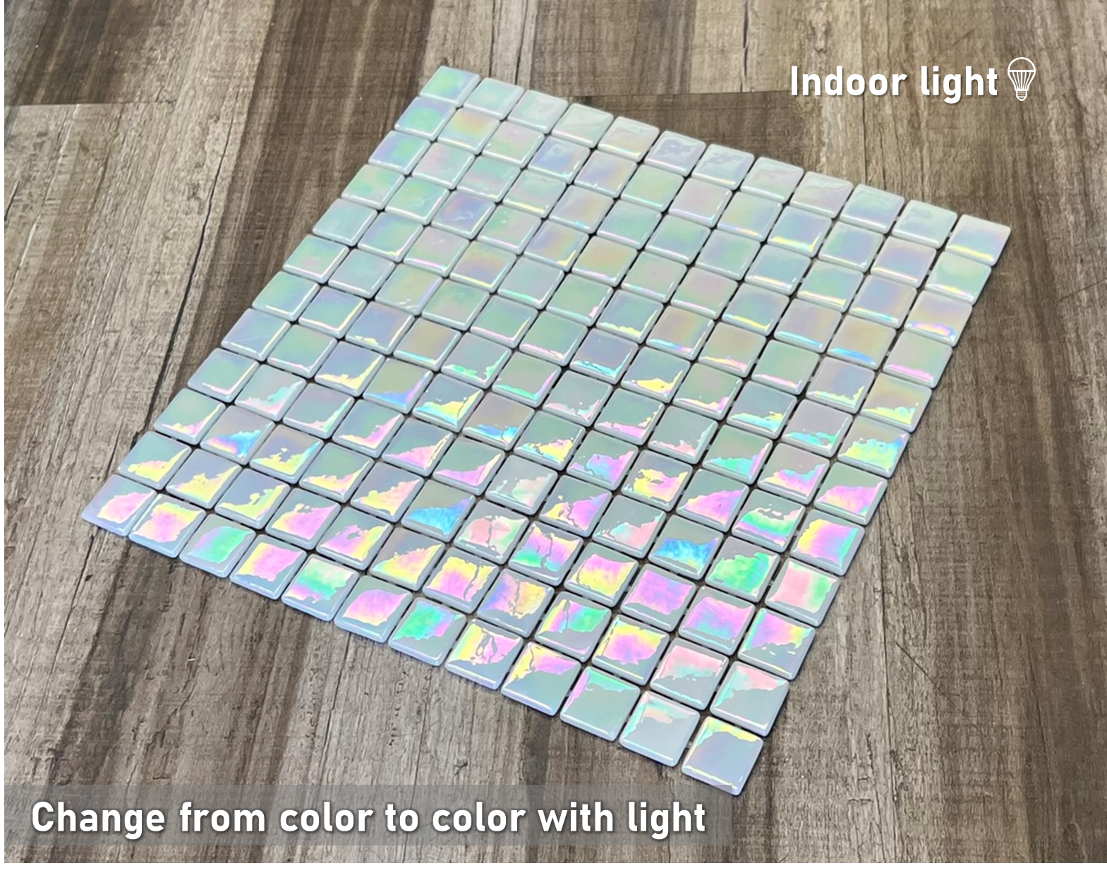Tenedos White 1x1 Square Iridescent Recycled Glass Mosaic Floor and Wall Tile for Kitchen Backsplash, Swimming Pool Tile, Bathroom Wall, Accent Wall